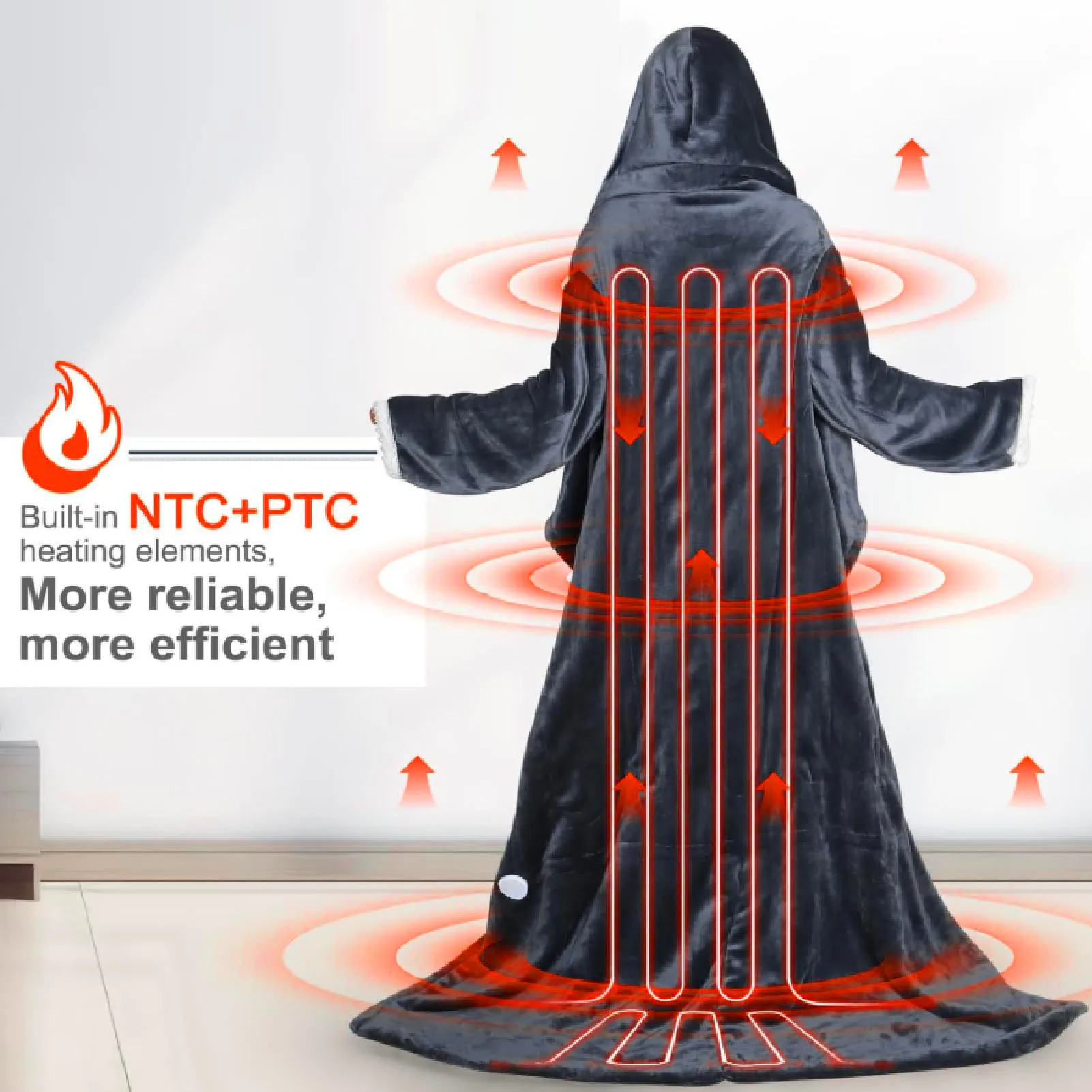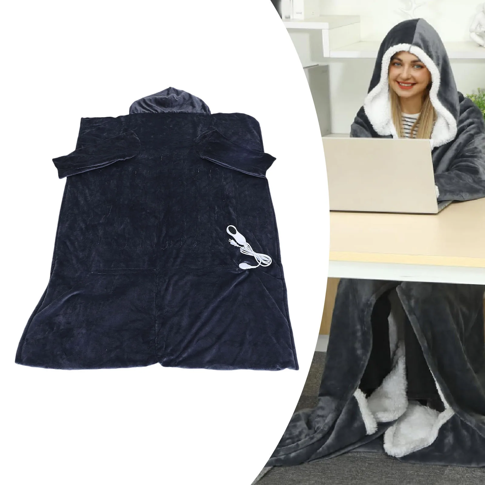 1. All Round Warmth and Flexibility: This wearable heated blanket measures 70x50 inches, featuring 18 inch sleeves, a cozy hood, and foot pocket. It offers complete movement freely while keeping your arms, head, neck, and feet warm.2. Customizable Comfort: Equipped with a controller offering 10 temperature levels (86 to 131°F) and 3 timer options (2 hours, 4 hours, 8 hours), allowing you to customize your comfort and shut off time according to your needs.