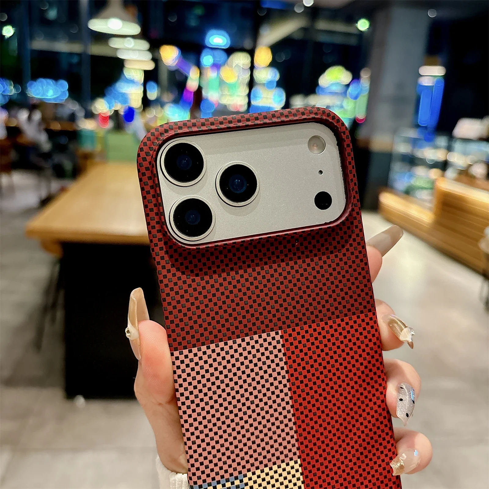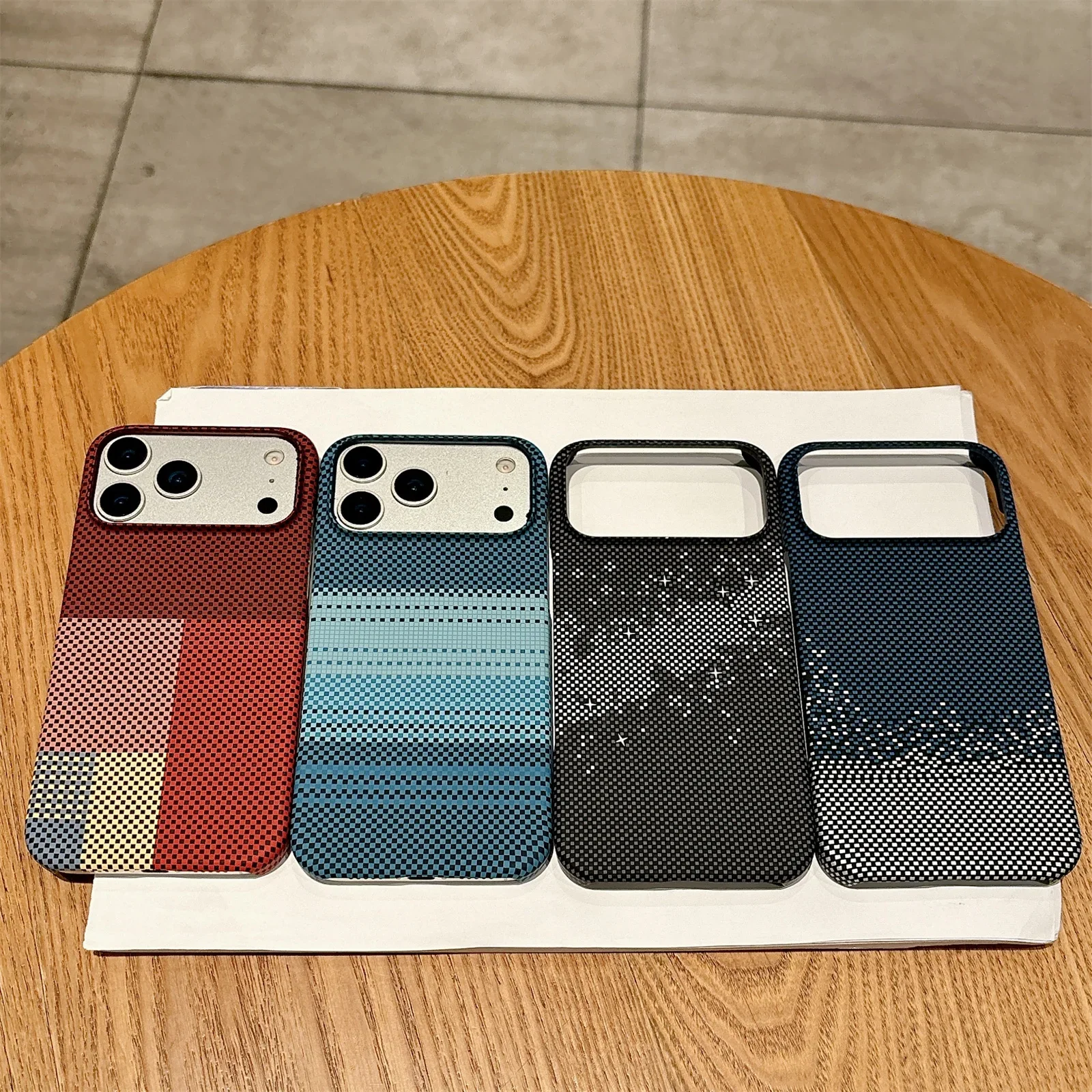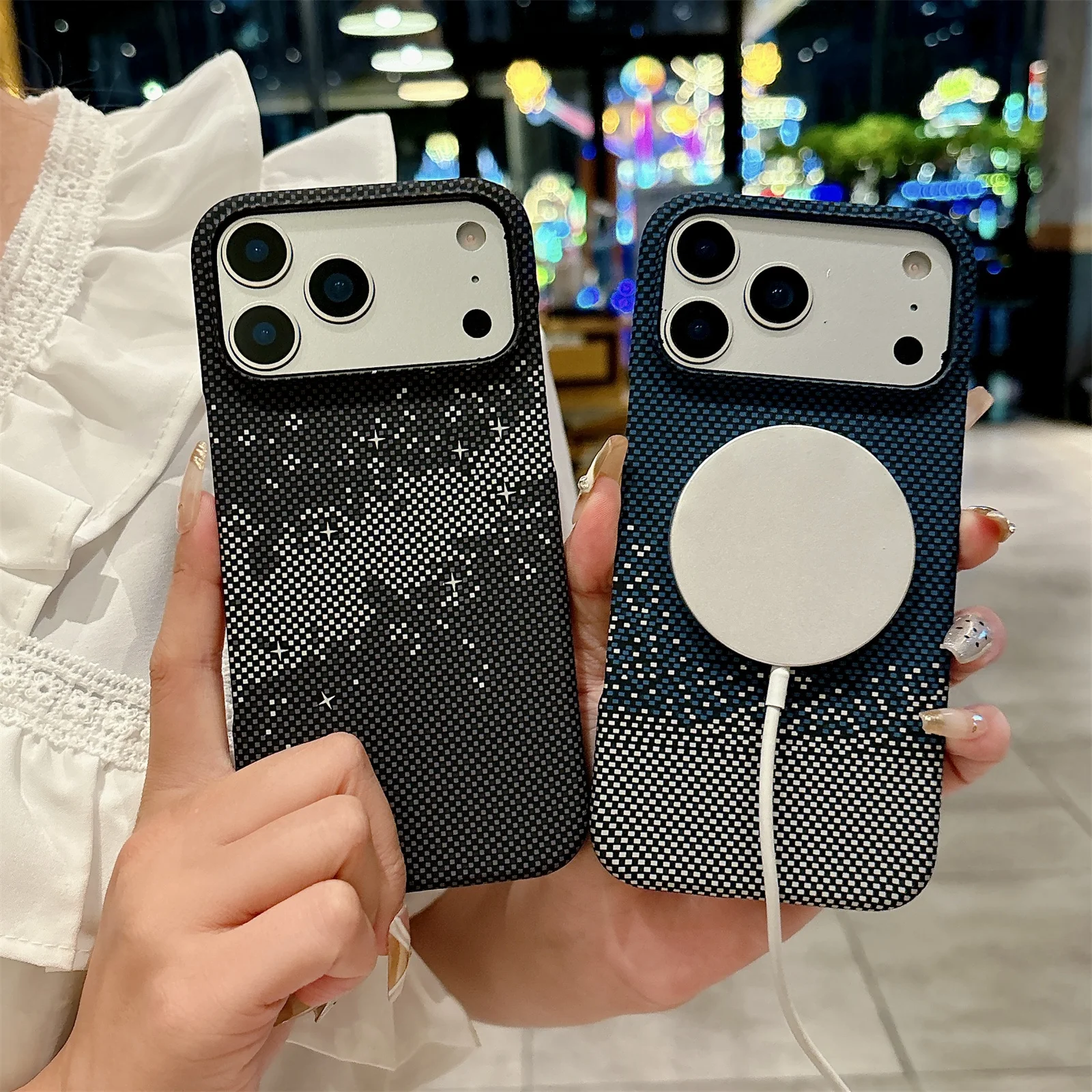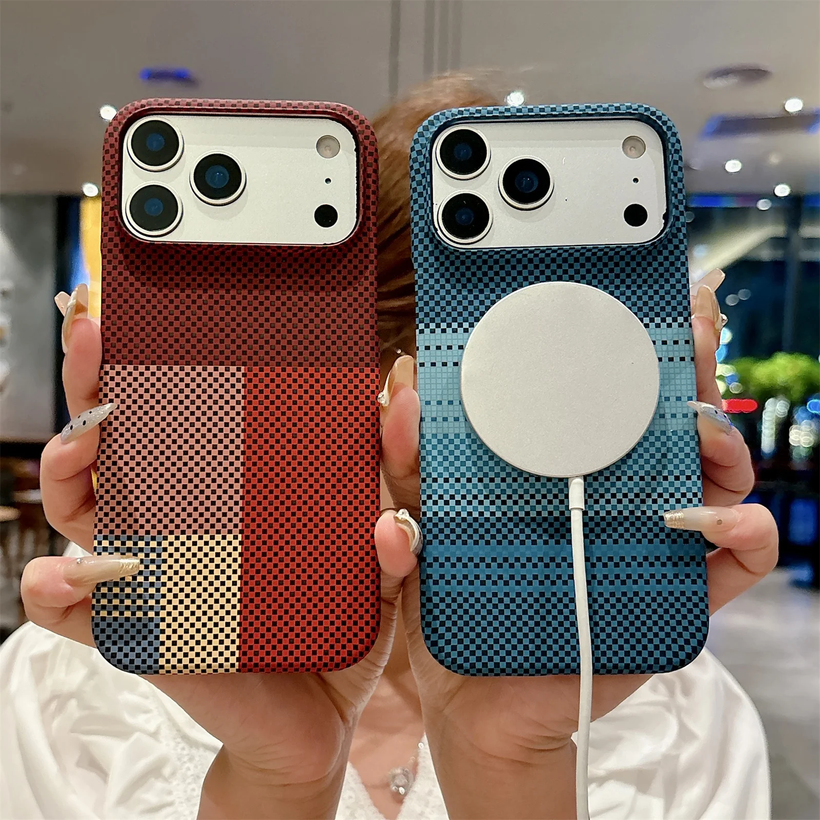 Carbon Fiber Kevlar Texture Magnetic Phone Case for Apple IPhone Air 16 15 14 Plus 13 17 Pro Max Hard Plastic Protective Cover