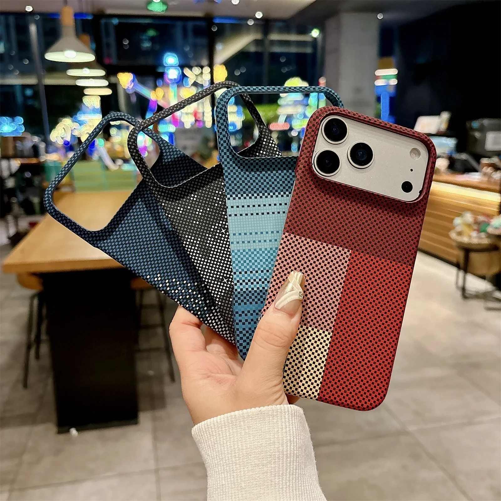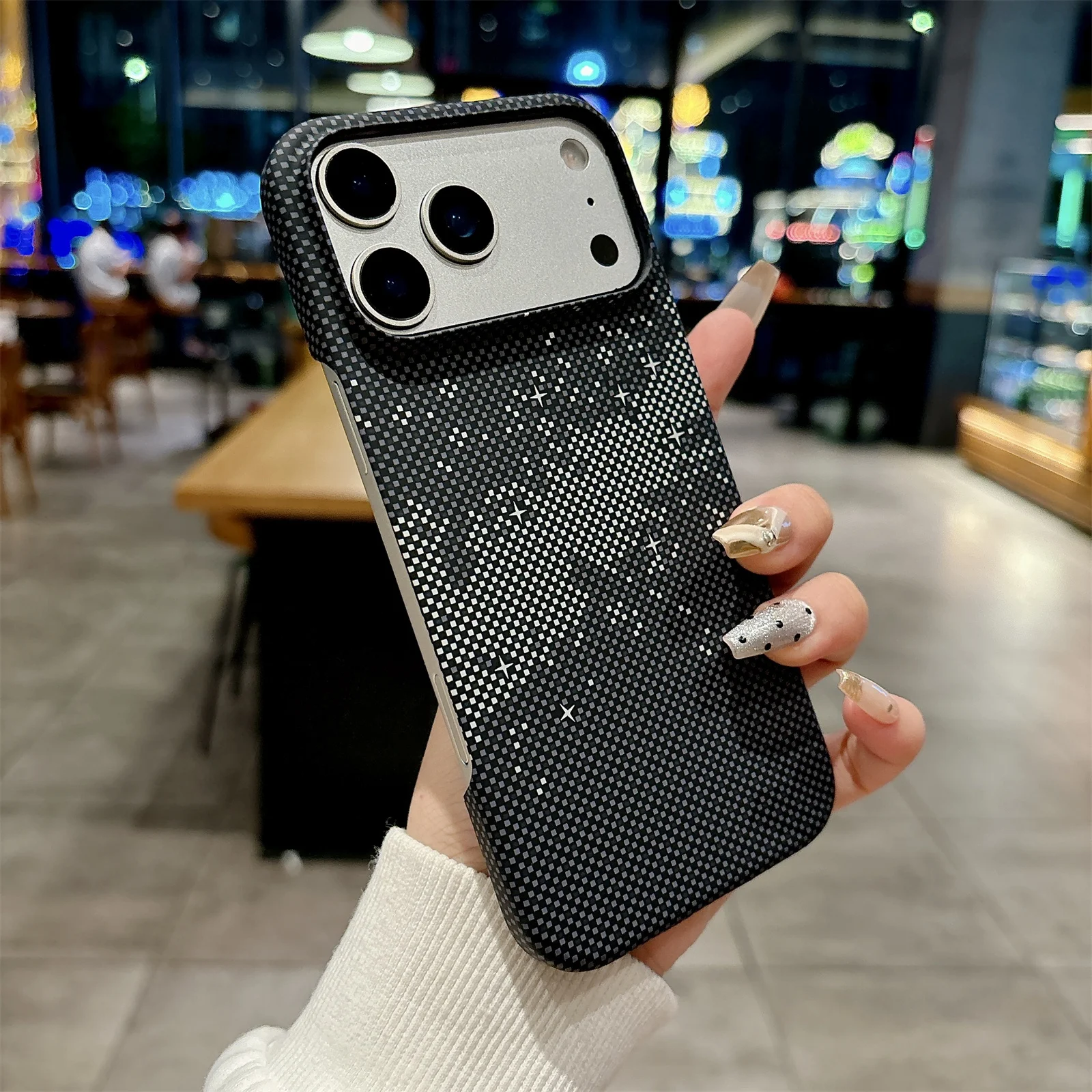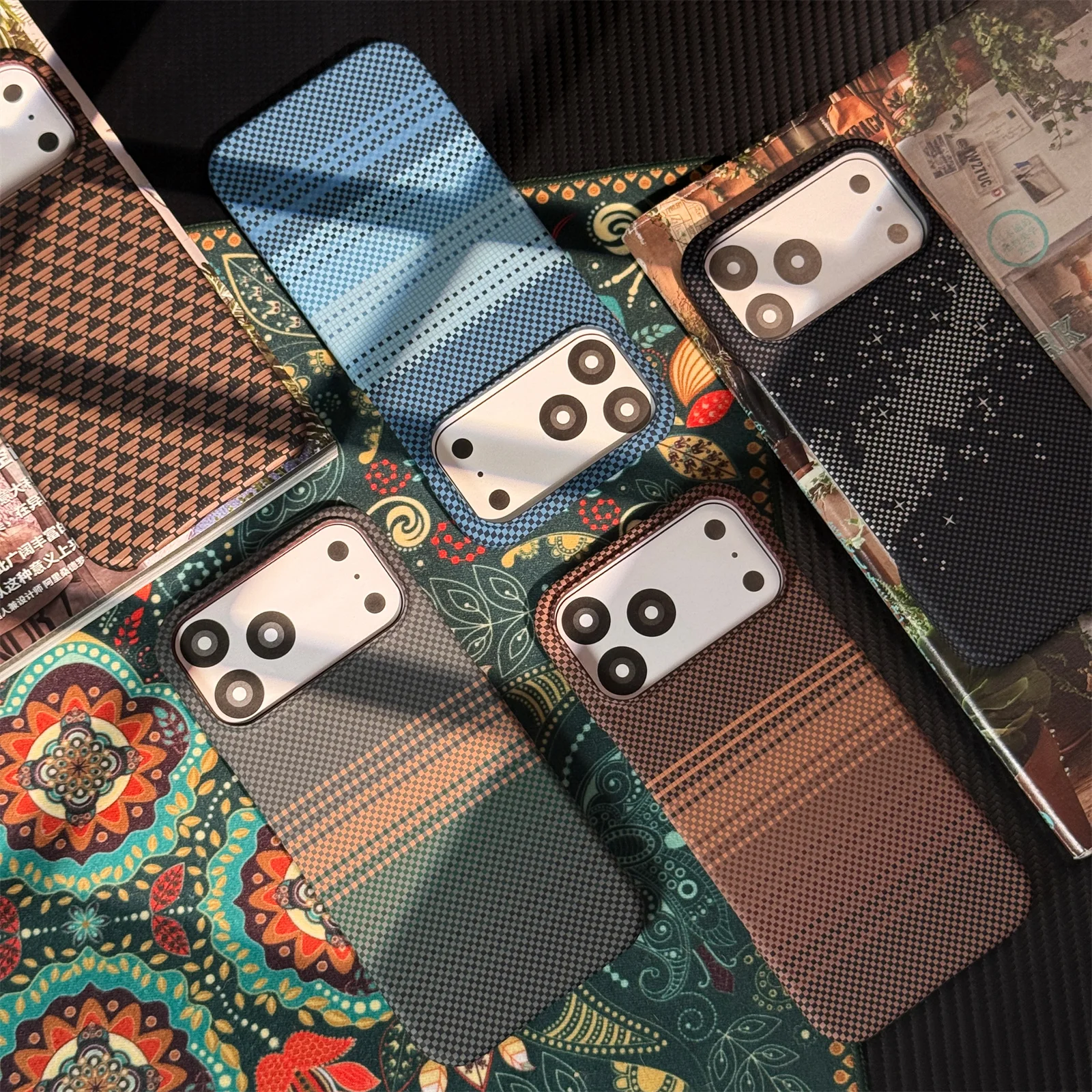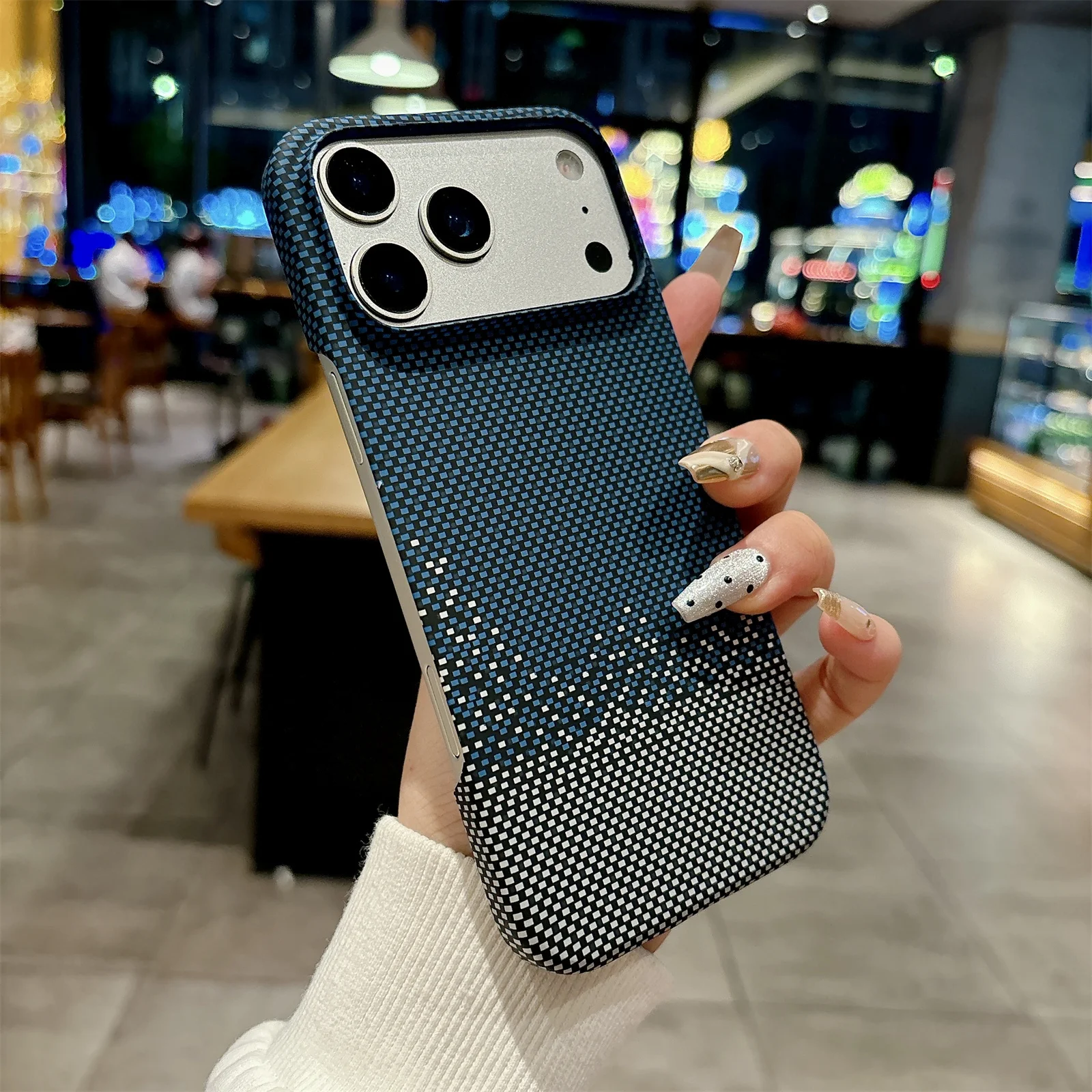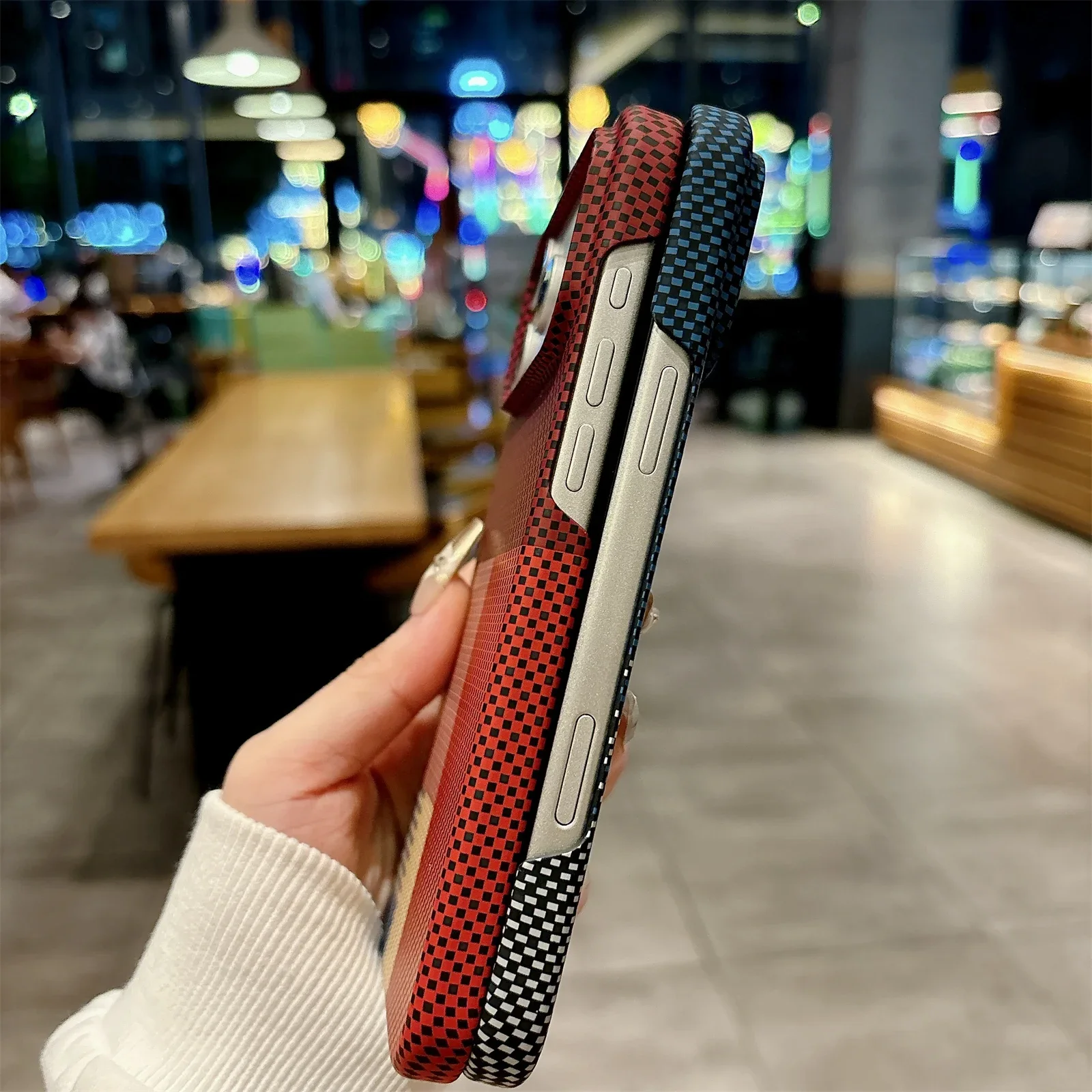 Carbon Fiber Kevlar Texture Magnetic Phone Case for Apple IPhone Air 16 15 14 Plus 13 17 Pro Max Hard Plastic Protective Cover