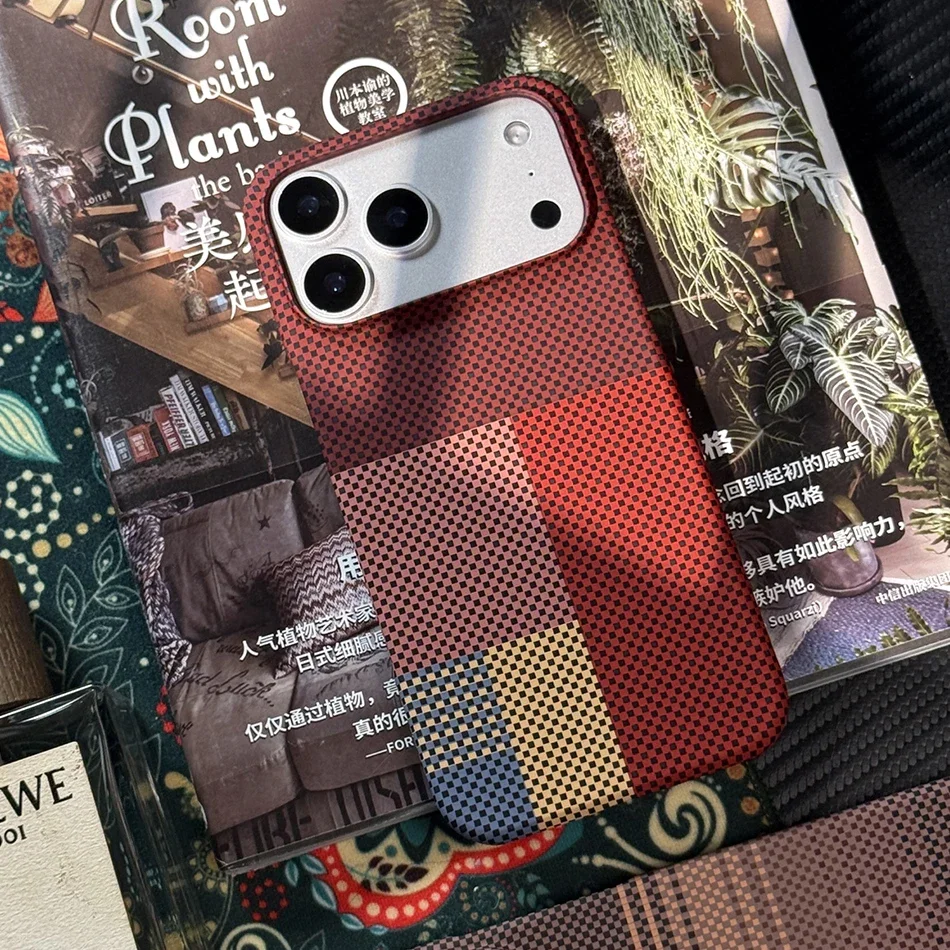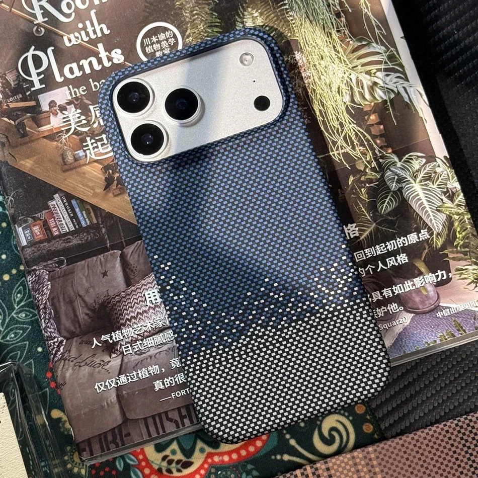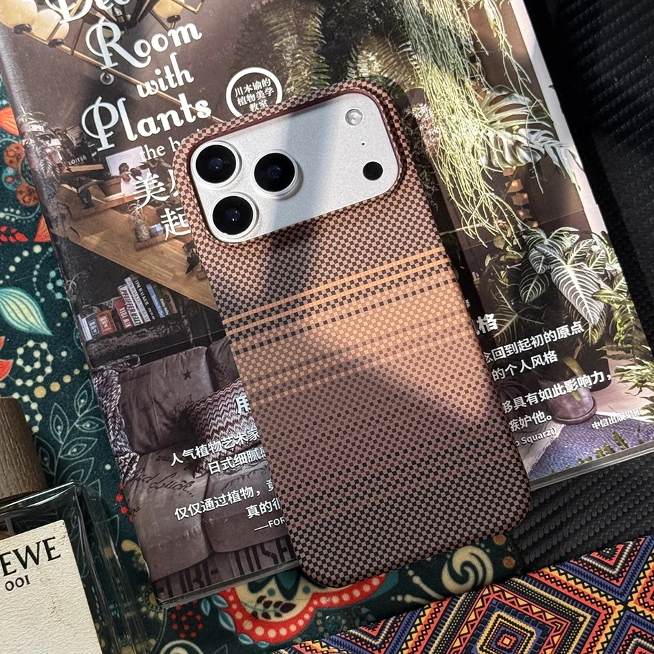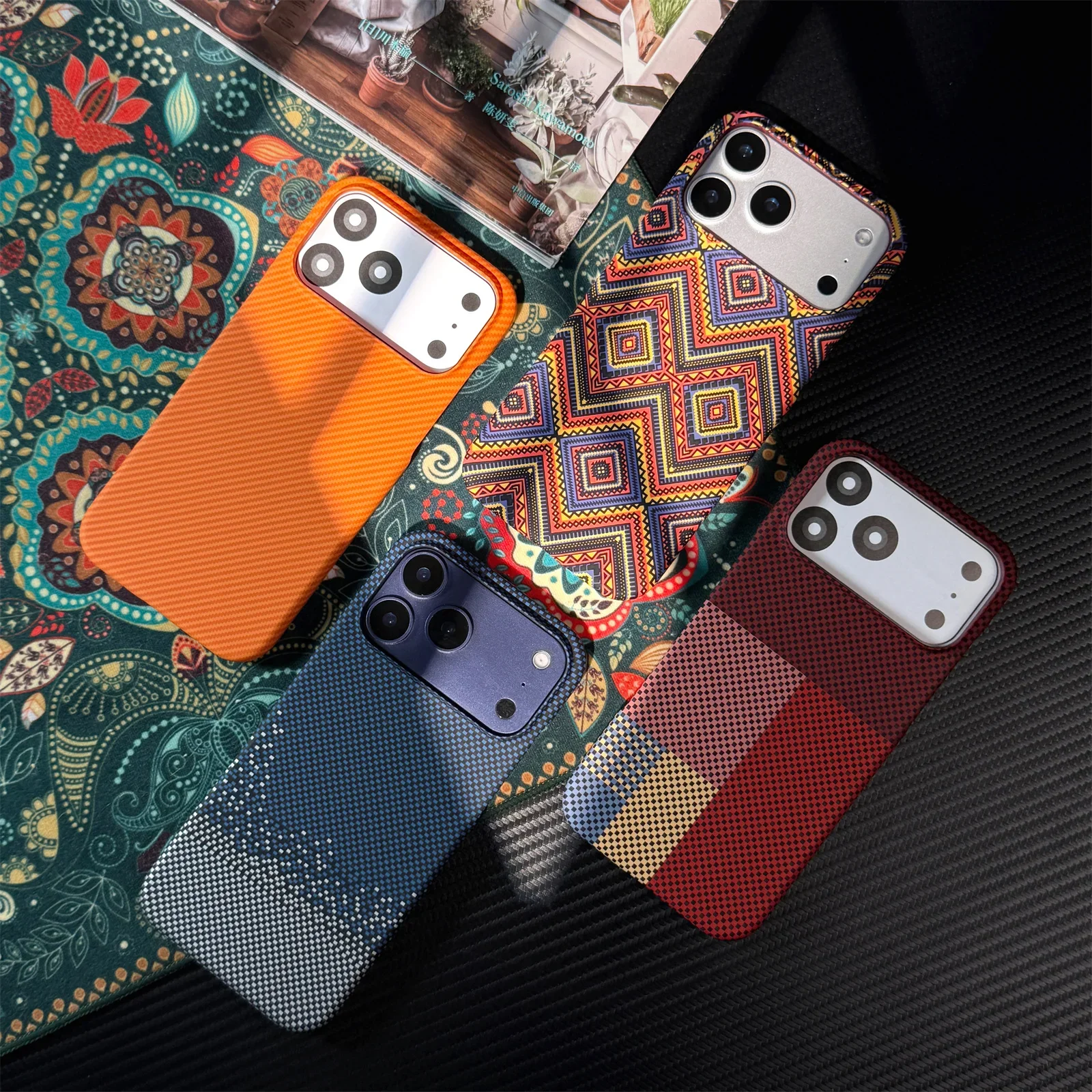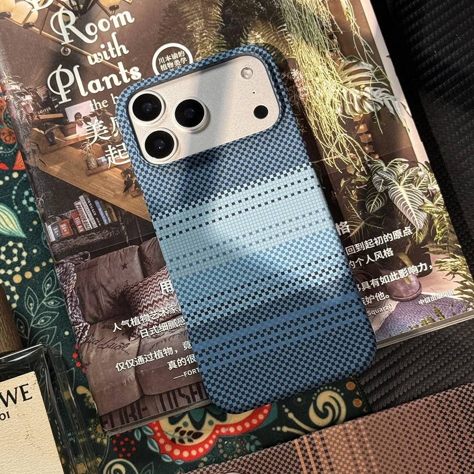 Carbon Fiber Kevlar Texture Magnetic Phone Case for Apple IPhone Air 16 15 14 Plus 13 17 Pro Max Hard Plastic Protective Cover